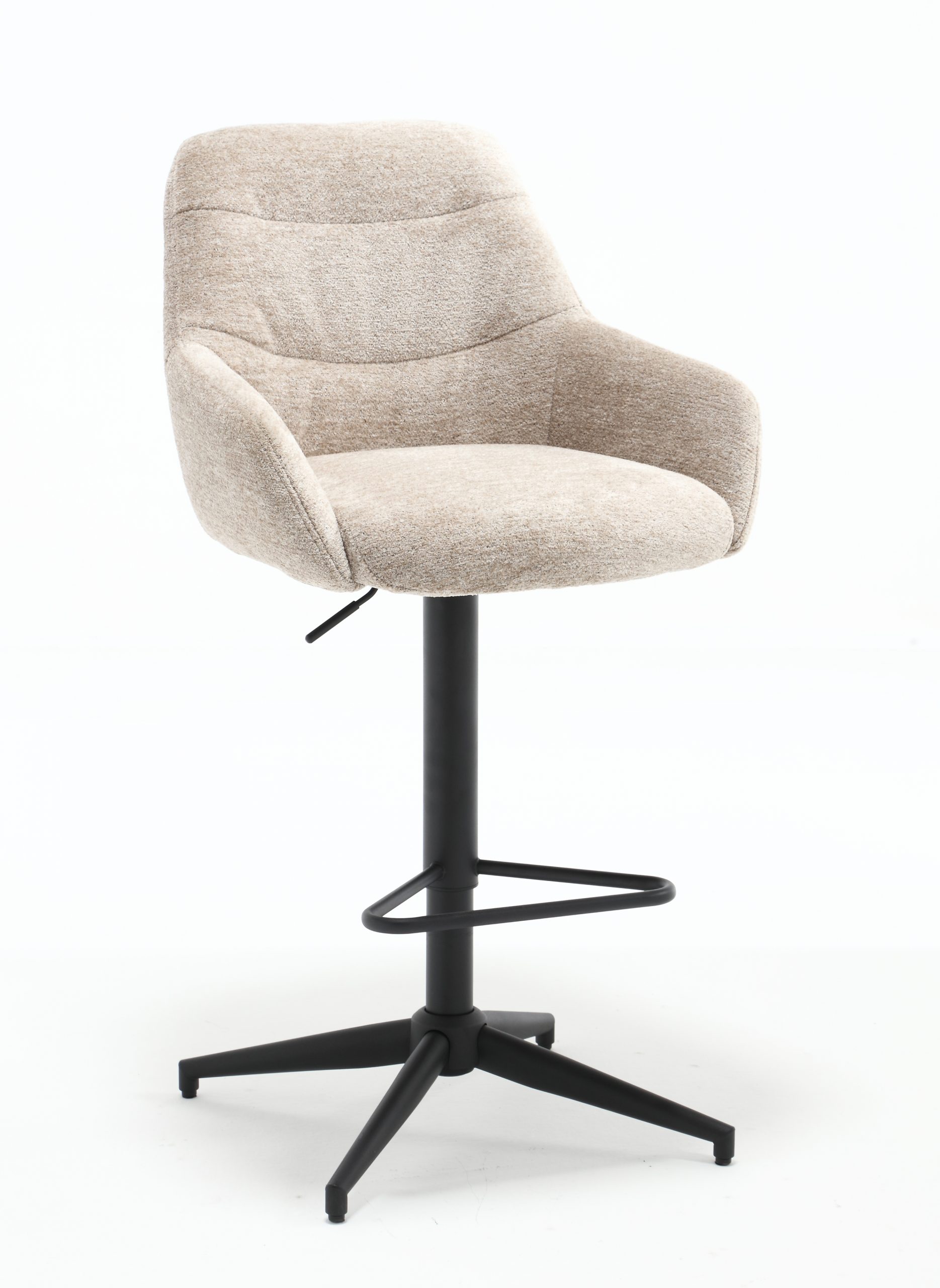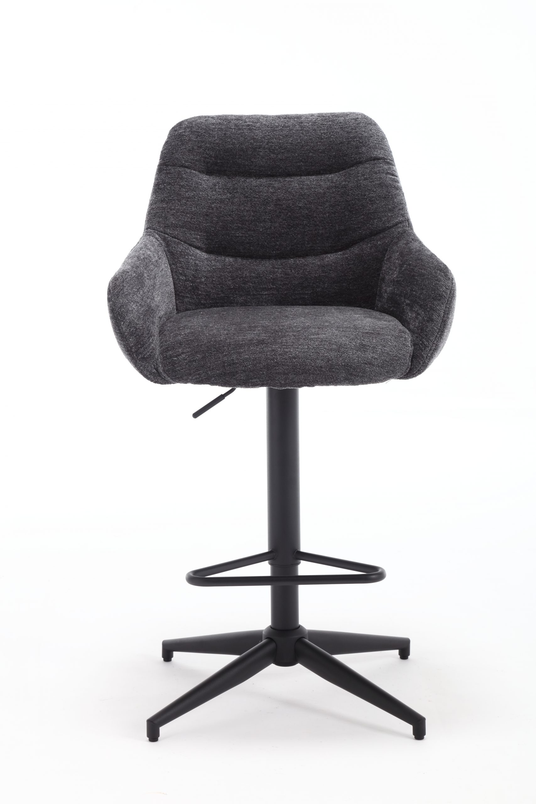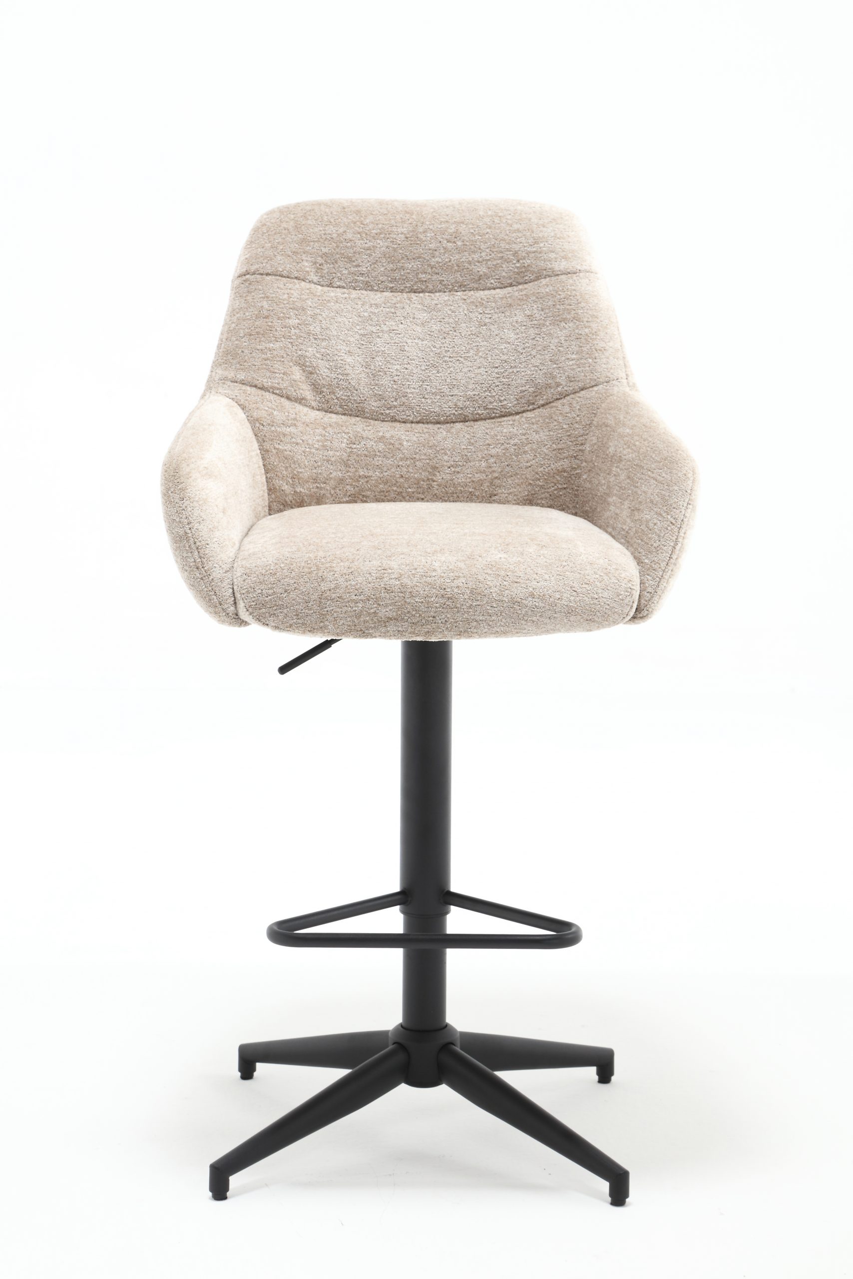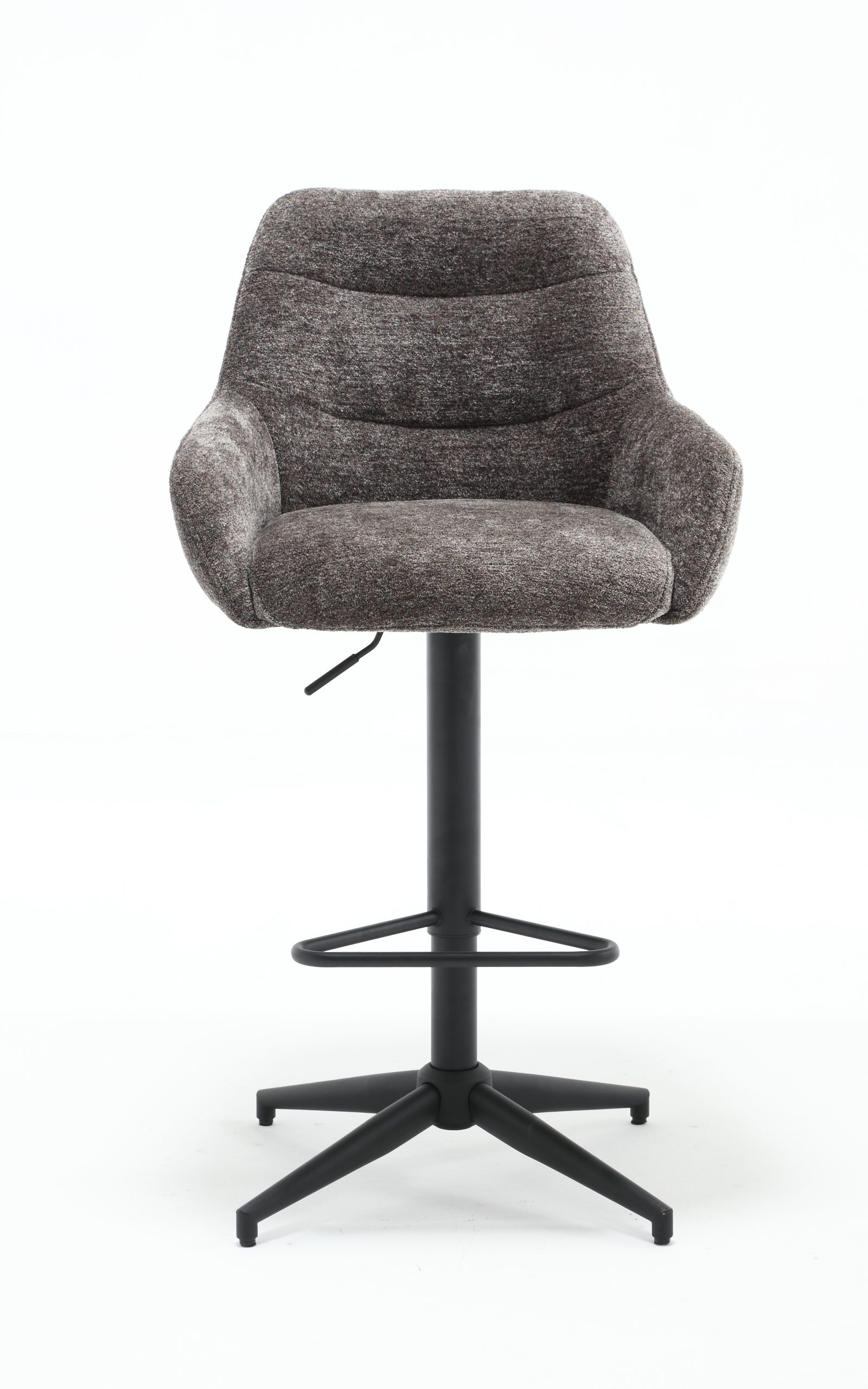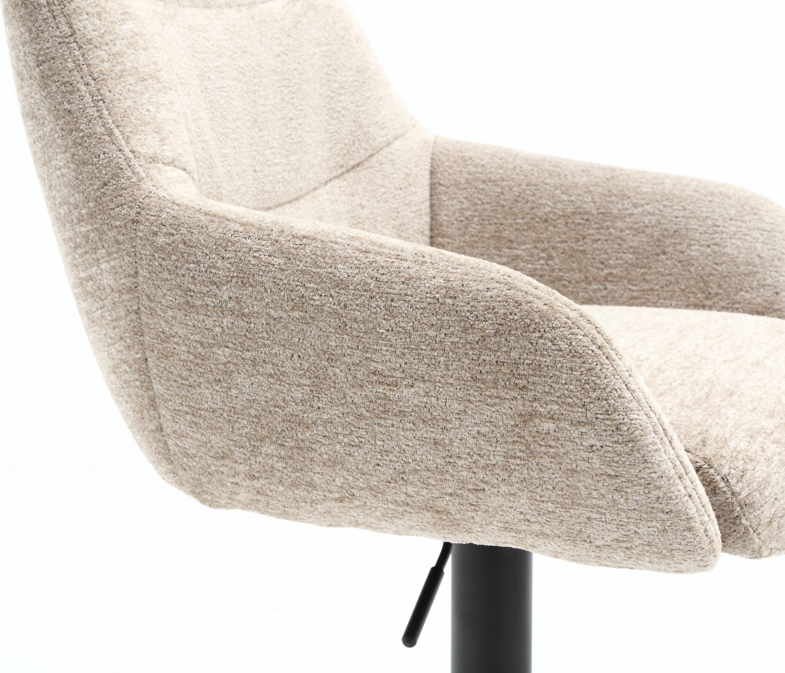 Der massive Standfuß des Barhockers Arpe sorgt für eine Stabilität, die gerade in der maximalen Ausfahrhöhe von 88 cm unverzichtbar ist. Wir verwenden für das Gestell robuste Materialien, die wir mit einer hochwertigen Pulverbeschichtung veredeln. Diese Beschichtung ist weitaus resistenter gegen Kratzer durch Schuhe oder Staubsauger als herkömmliche Lackierungen. Das matte Finish verleiht dem Barhocker zudem eine moderne, industrielle Note, die einen spannenden Kontrast zu den weichen Polsterflächen bildet. Diese Detailverliebtheit in der Materialkombination ist es, die dem Arpe seine besondere Ausstrahlung und eine zeitlose Modernität verleiht.