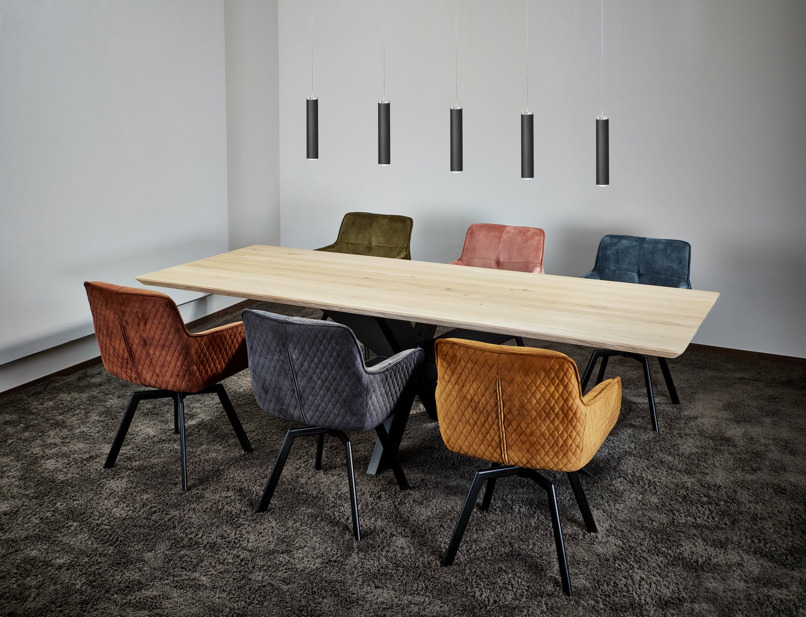 Die Leichtigkeit der massiven Holzplatte ist der Clou: Durch die abgeschrägte Schweizer Kante wirkt unser Esszimmertisch MESCHEDE filigran und ist dennoch massiv.