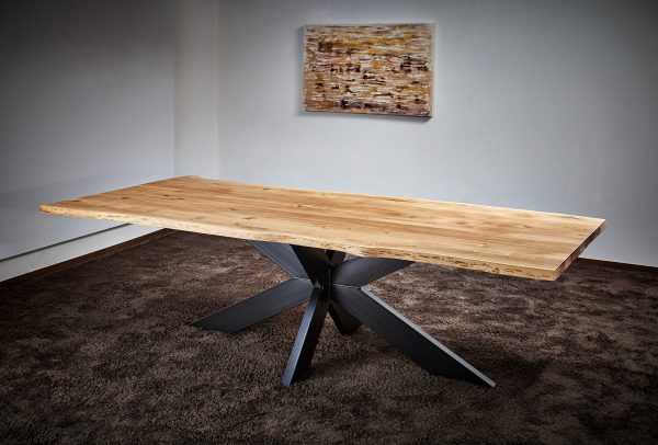 Hier präsentieren wir Ihnen unseren beliebten Baumkanten-Esstisch ARNSBERG.