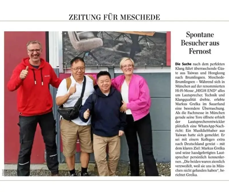 Nur acht Stunden später standen Markus Grelka und seine Ehefrau Daniela Rose am Bahnhof in Dortmund, um die beiden Gäste aus Taipeh in Empfang zu nehmen. In den folgenden 24 Stunden wurde gemeinsam gehört, getestet, diskutiert – und schnell war klar: Die Leidenschaft für Klang kennt keine Sprachbarrieren.